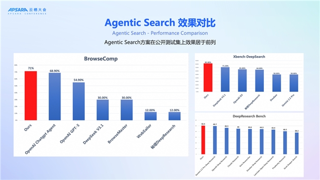 权威测试领先:在OpenAI的BrowseComp与Deep Research评测集中,Agentic Search检索与推理能力超越Gemini、OpenAI等国际主流方案,复杂任务准确率提升超40%。