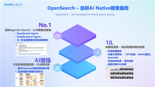 3.智能检索服务OpenSearch - 深度接入AI原生能力的自研AI Native搜索服务。此为'二纵'。